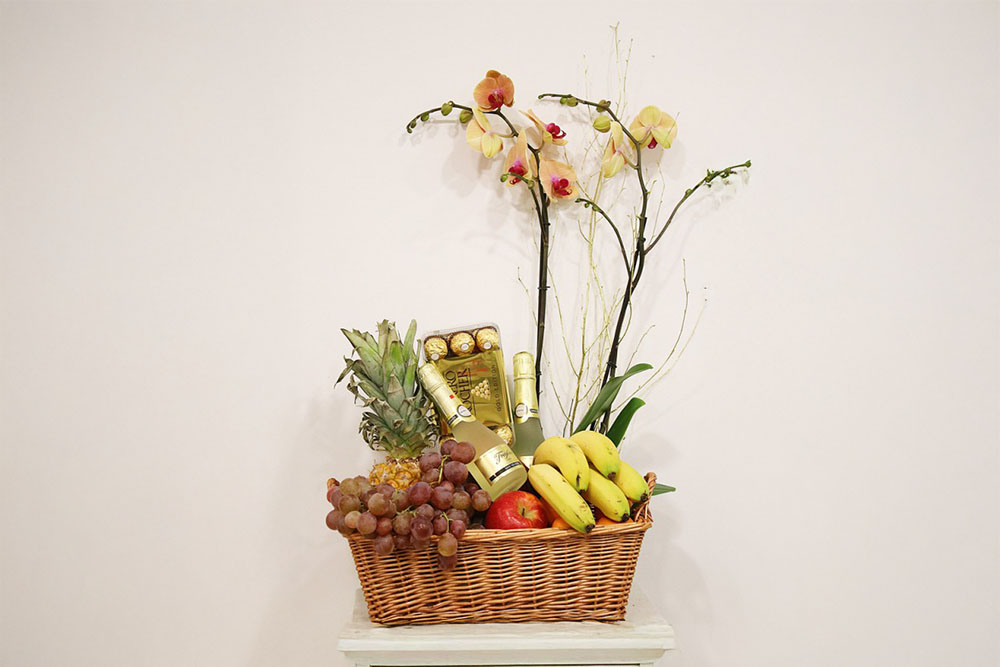 La caja de frutas , orquídea y bombones estupenda , eligiendo lo que yo quería. La tarjeta impecable también. El trato de 10 ! Soy florista y sé que muchas veces,por falta de tiempo, es complicado atender con mimo a todos los clientes. Así que te doy las gracias sobre todo por tu paciencia conmigo, tu amabilidad . Y por supuesto por tu trabajo . Gracias Hortensia y espero volver a recurrir a tí para dar sorpresas 😊