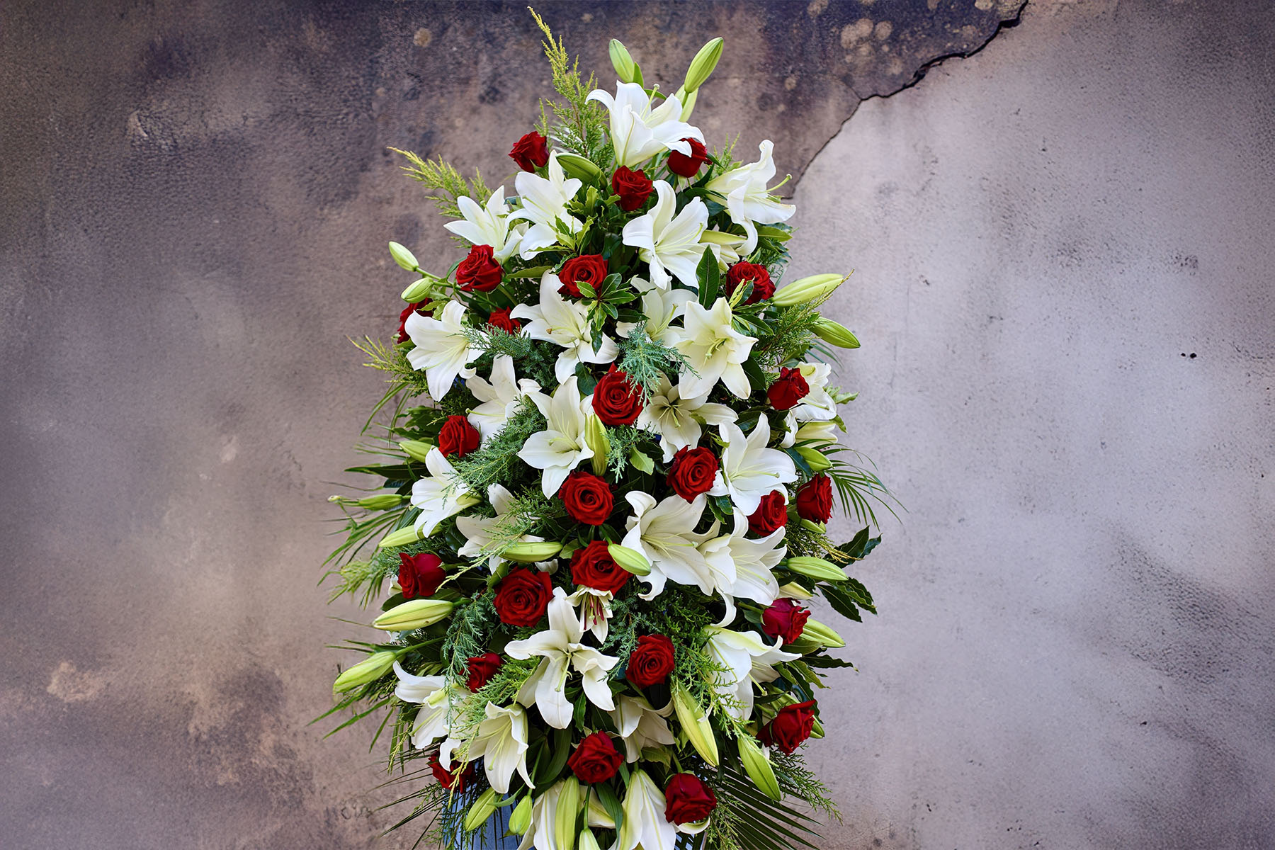 En Floristería La Flor elaboramos coronas, centros y arreglos funerarios con la máxima sensibilidad. Cada creación está pensada para ofrecer consuelo, respeto y un emotivo recuerdo hacia tus seres queridos.